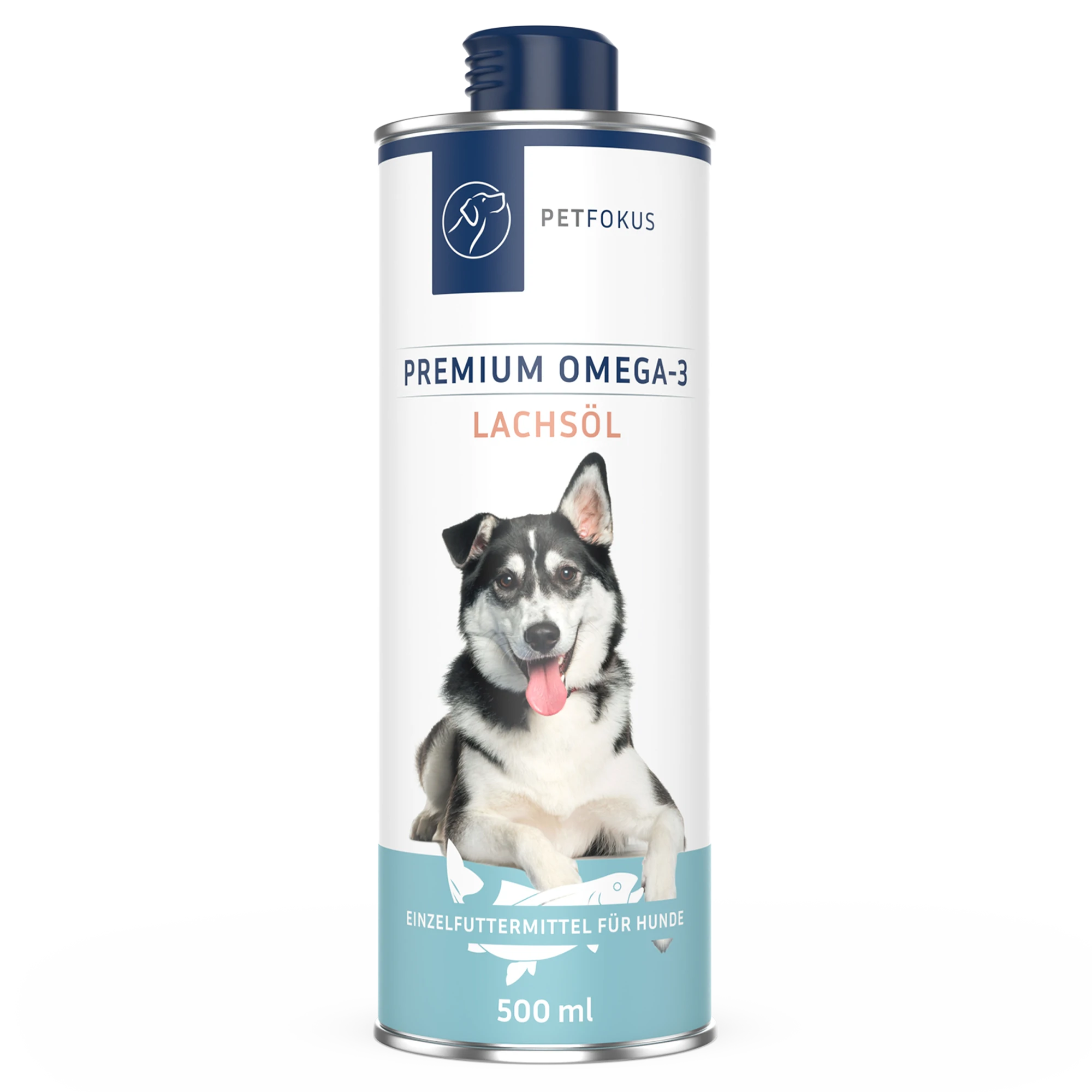 Eine Flasche enthält 500 ml PetFokus Premium Omega-3 Lachsöl.
