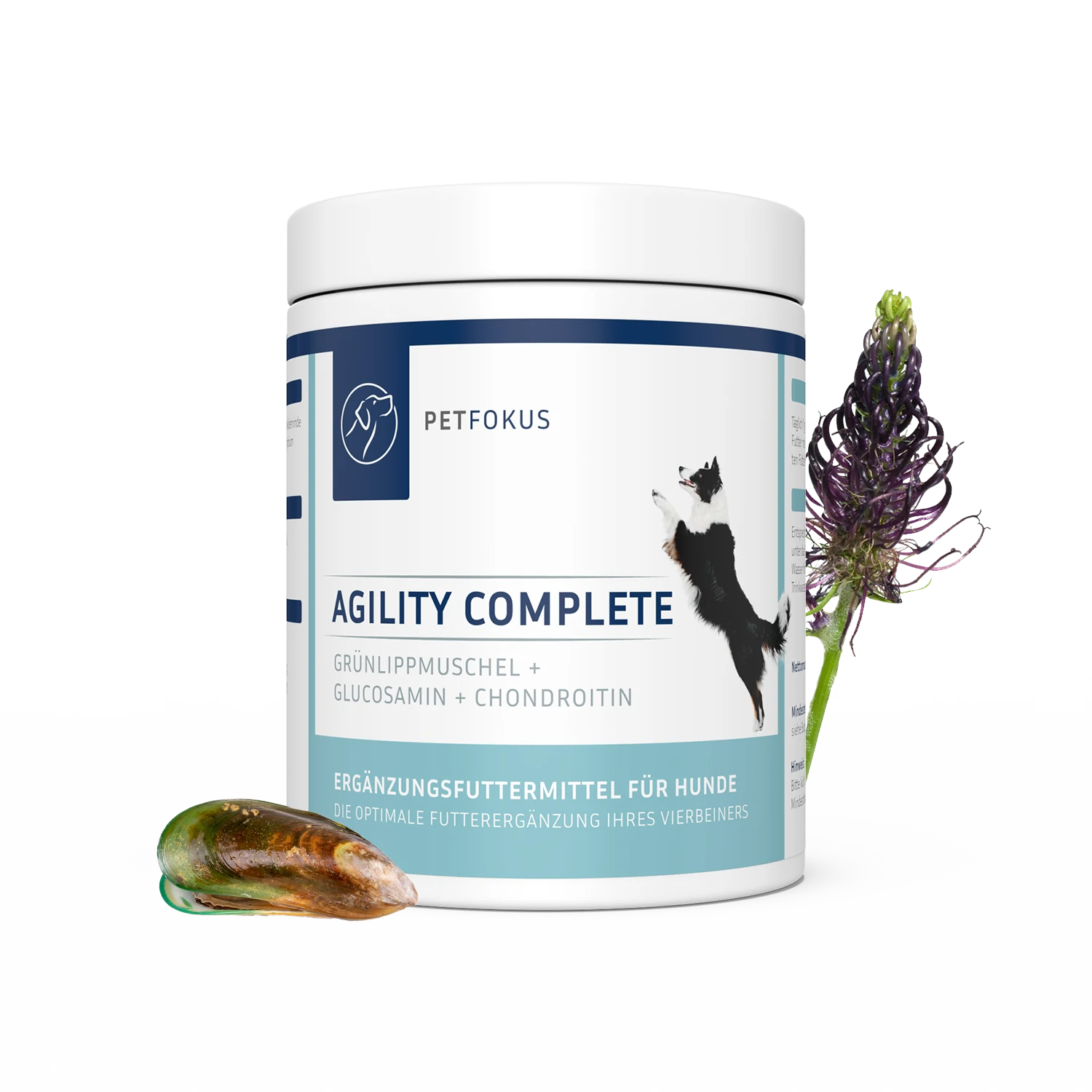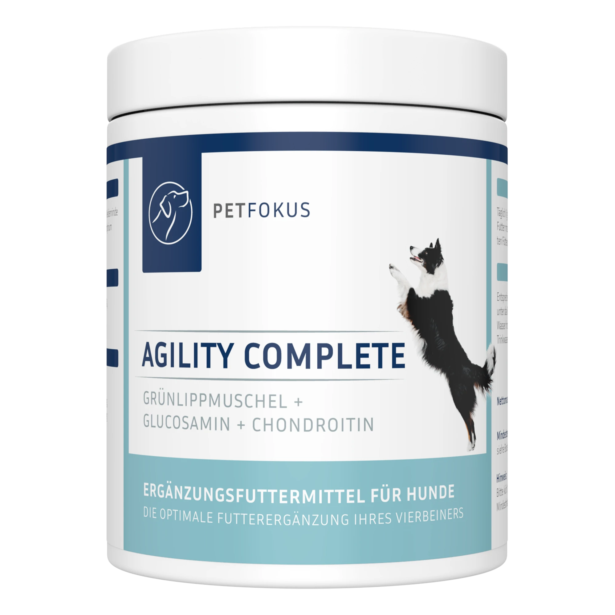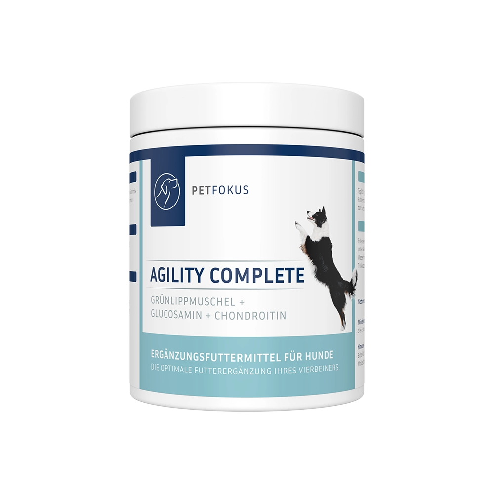 PetFokus Agility Complete ist ein Ergänzungsfuttermittel für Hunde, bestehend aus einer ausgewogenen Kombination von 11 hochwertigen und perfekt aufeinander abgestimmten Inhaltsstoffen, die synergetisch zueinander wirken. Damit stellt es eine umfangreiche Ergänzung zum täglichen Alleinfuttermittel dar.