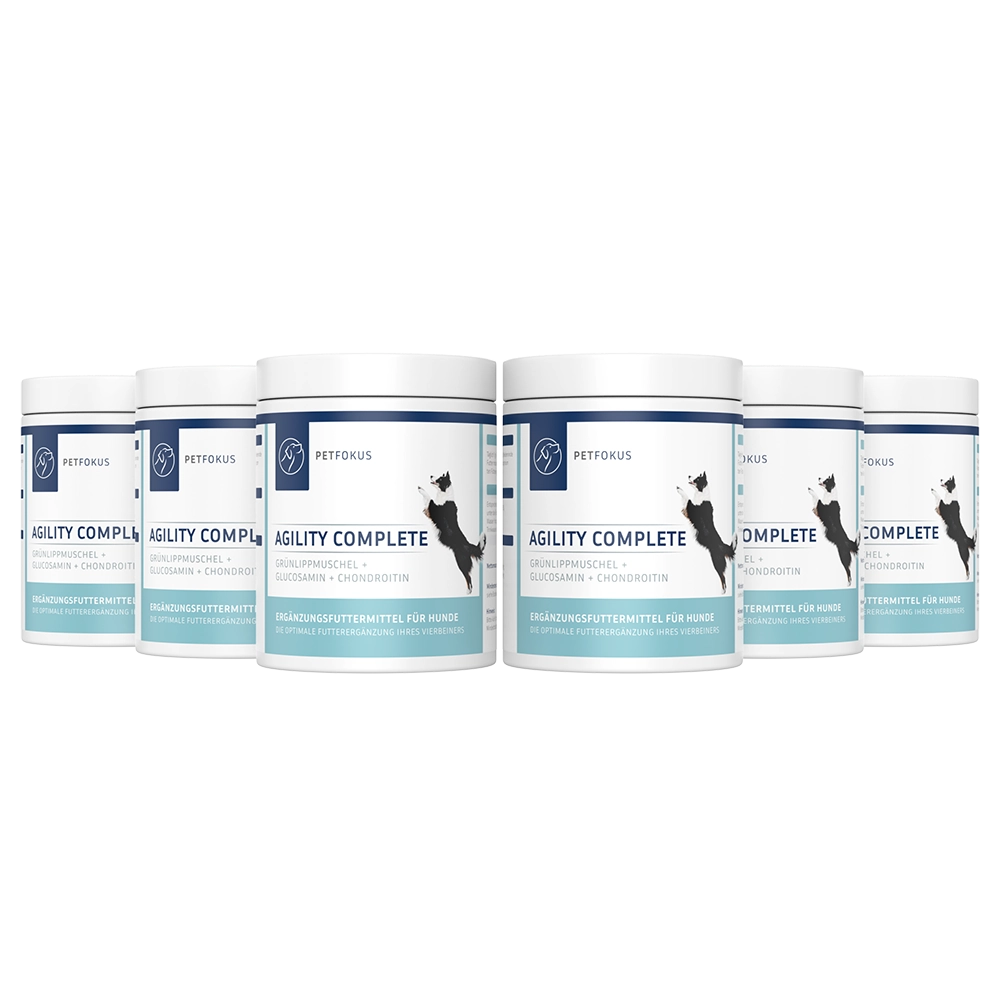 Das 6-Dosen-Paket eignet sich besonders dann für Sie, wenn Sie einen großen oder mehrere Hunde besitzen, denen Sie Agility Complete als Ergänzungsfuttermittel geben möchten. Somit können nicht nur alle Ihre geliebten Vierbeiner von dem Produkt profitieren, sondern Sie sparen auch noch durch unser besonders günstiges Paket. Ihr Vorteil: Beim 6-Dosen-Paket können wir Ihnen unseren günstigsten Preis je Dose anbieten.